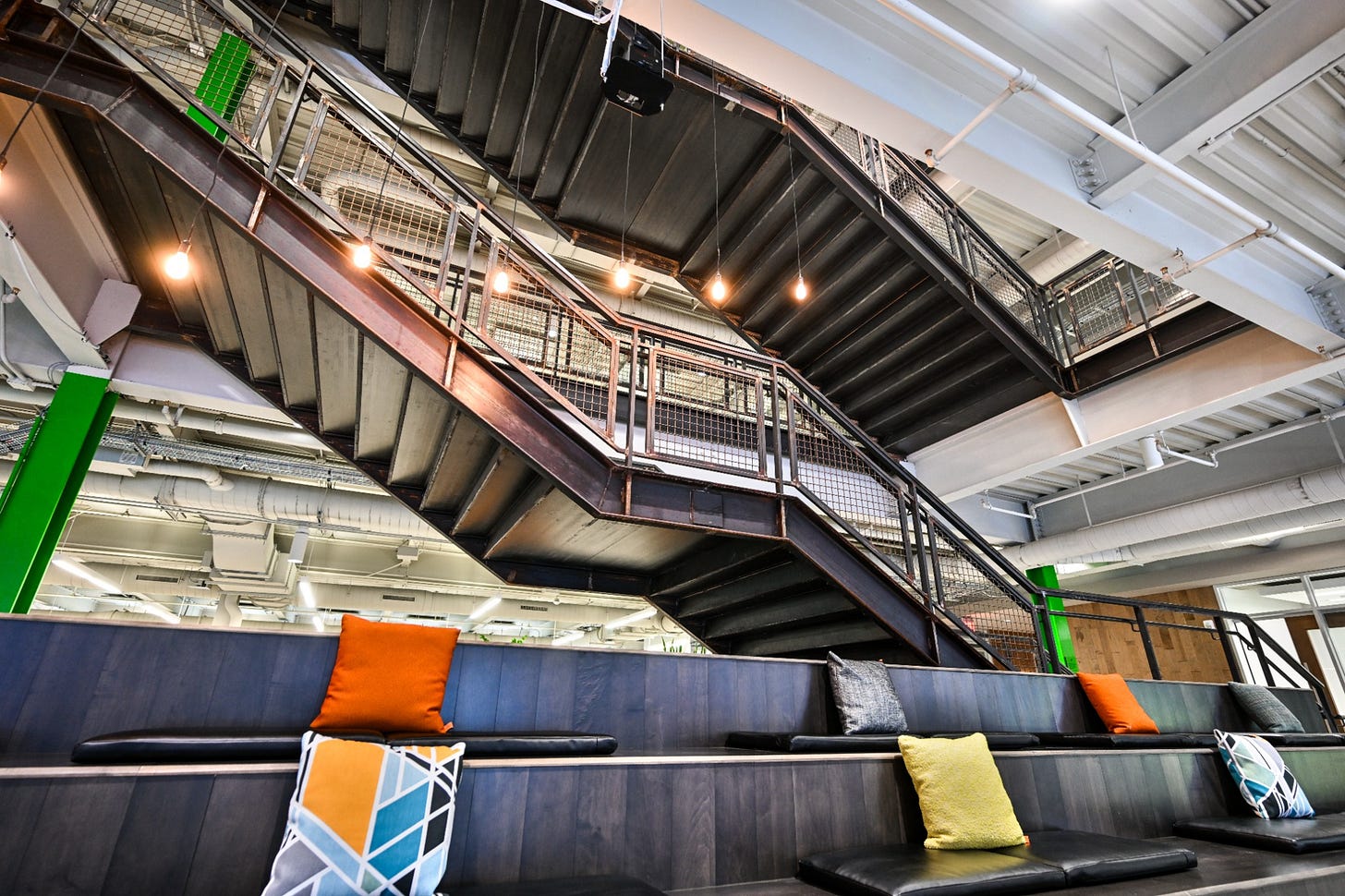 A view of our office, The Marketer, from the speakers POV. The open stairwell was critical to the design of our company meetings giving a relaxed, informal way to gather.
